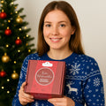 Geschenkkarton mit Lebkuchengewürz, Glühweingewürz, Chai Tee und Haselnusskerne mit Vollmilchschokolade & Zimt